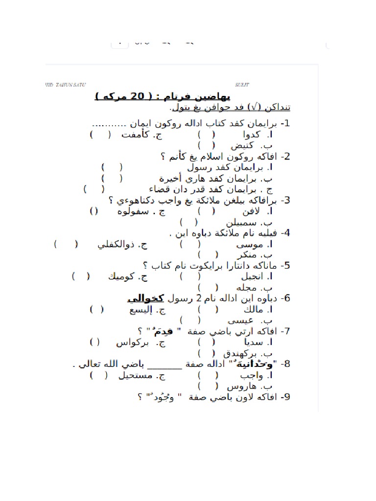 Sekolah Agama Negeri Johor Segamat Sekolah Agama Negeri Johor Tangkak Kembali. PAT Matematik Tahun 1. Soalan Pendidikan Islam Tahun 1 Ujian Penggal Pertama.